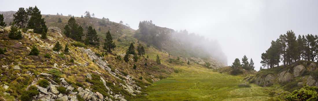 La pluie et le brouillard arrivent au moment du repas et nous accompagneront jusqu'au refuge de Rulhe.